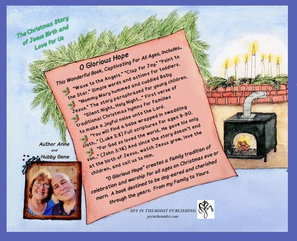 “O Glorious Hope: The Christmas Story of Jesus Birth and Love for Us” is a charming and sincere telling of the Nativity—and beyond—for parents and grandparents to share with small children. It’s reverent yet highly accessible, with scripture verses and lyrics of traditional Christmas carols throughout. The illustrations and interactive prompts for parents and children are whimsical and engaging. I manage our church’s bookstore (Church of the Incarnation, Santa Rosa, CA) and we have stocked Anne’s stories for children and will gladly stock this one, too.